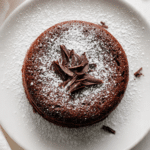 Dust generously with powdered sugar and add a few chocolate shavings for a simple but elegant presentation.