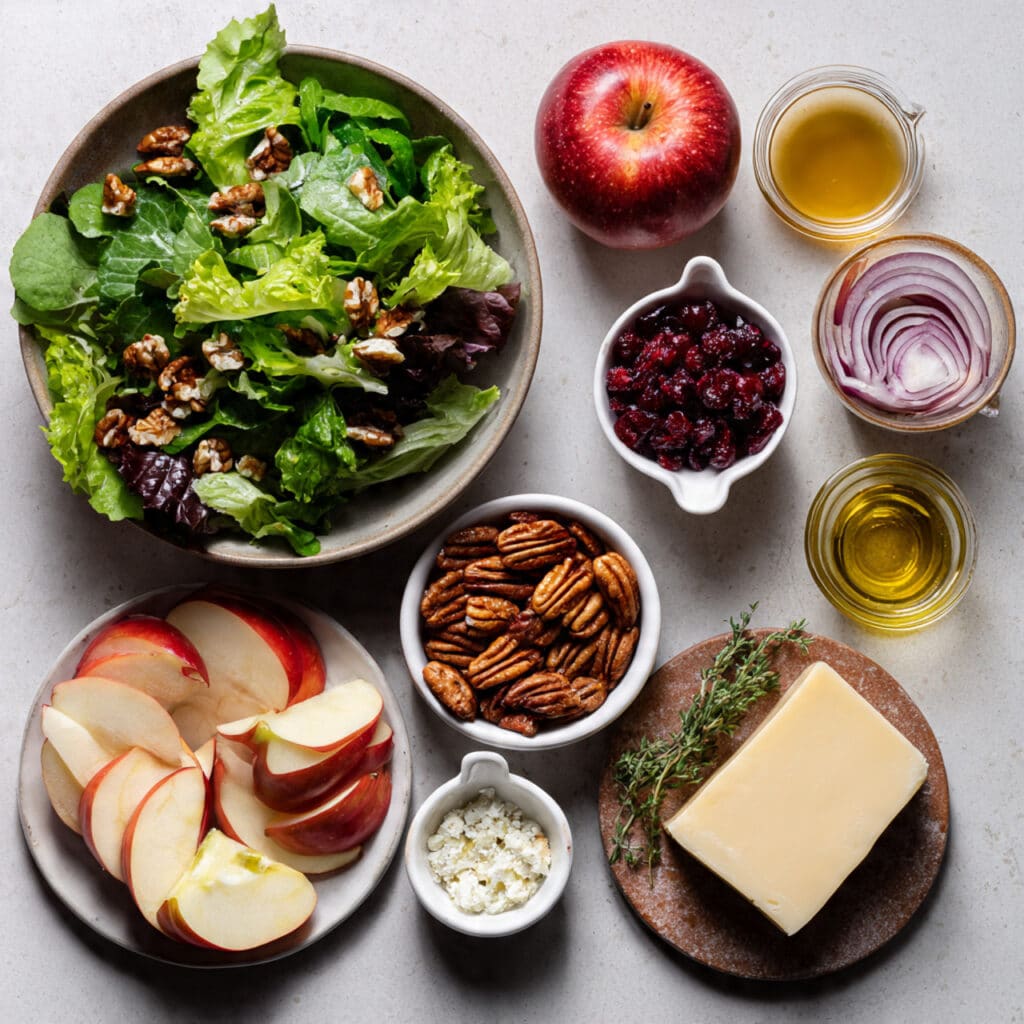 This salad is perfect for prepping in parts. You can slice the apples, make the vinaigrette, and toast the nuts ahead of time. Store everything separately and combine just before serving. Leftovers keep well in the fridge for a day, although it’s best eaten fresh.