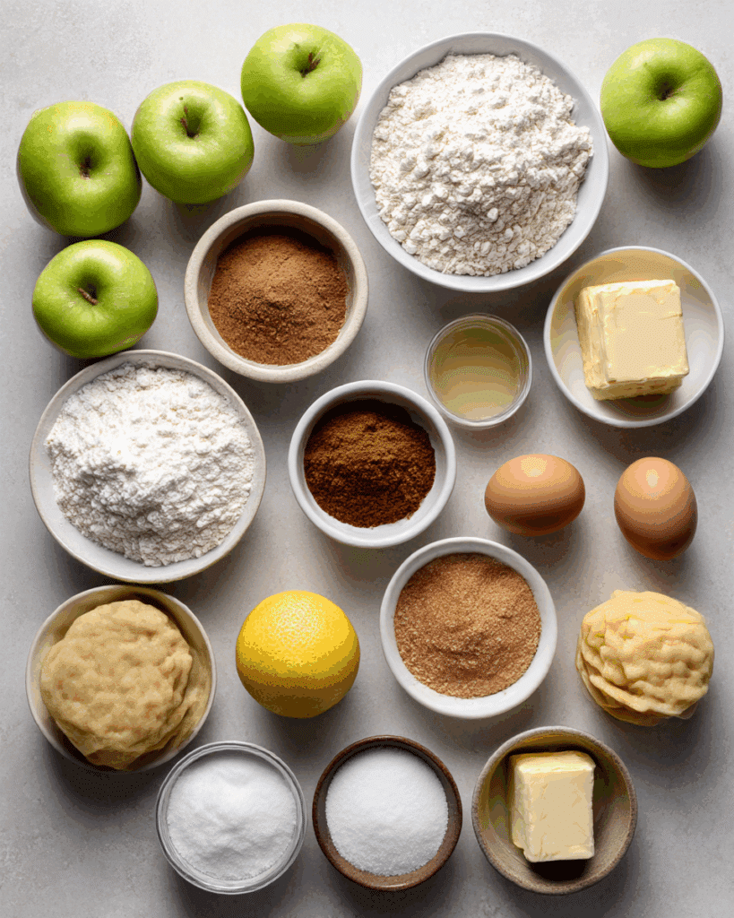 - Granny Smith Apples: 6 medium, peeled and sliced — tart, firm, and perfect for baking.