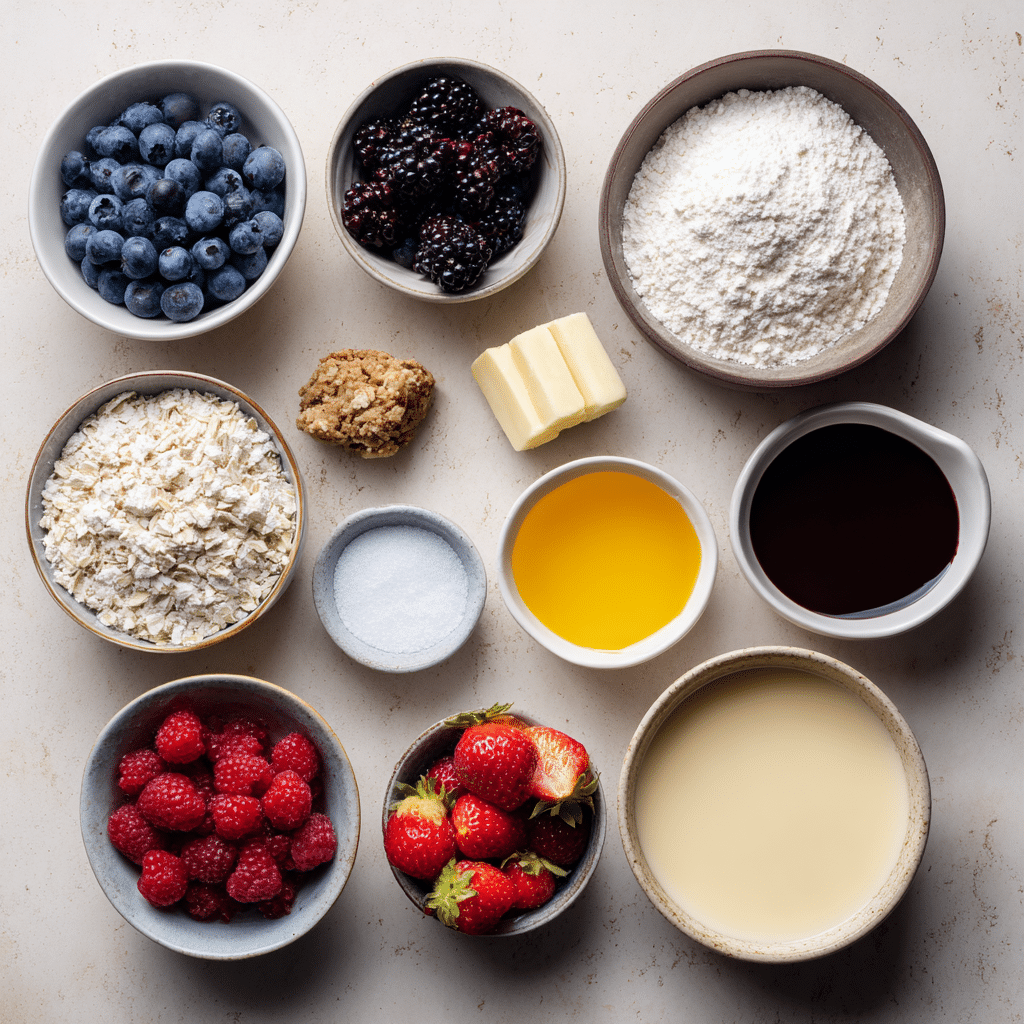 - Mixed Berries: 5 cups (fresh or frozen; blueberries, raspberries, blackberries, strawberries) – the juicy heart of the dish.
