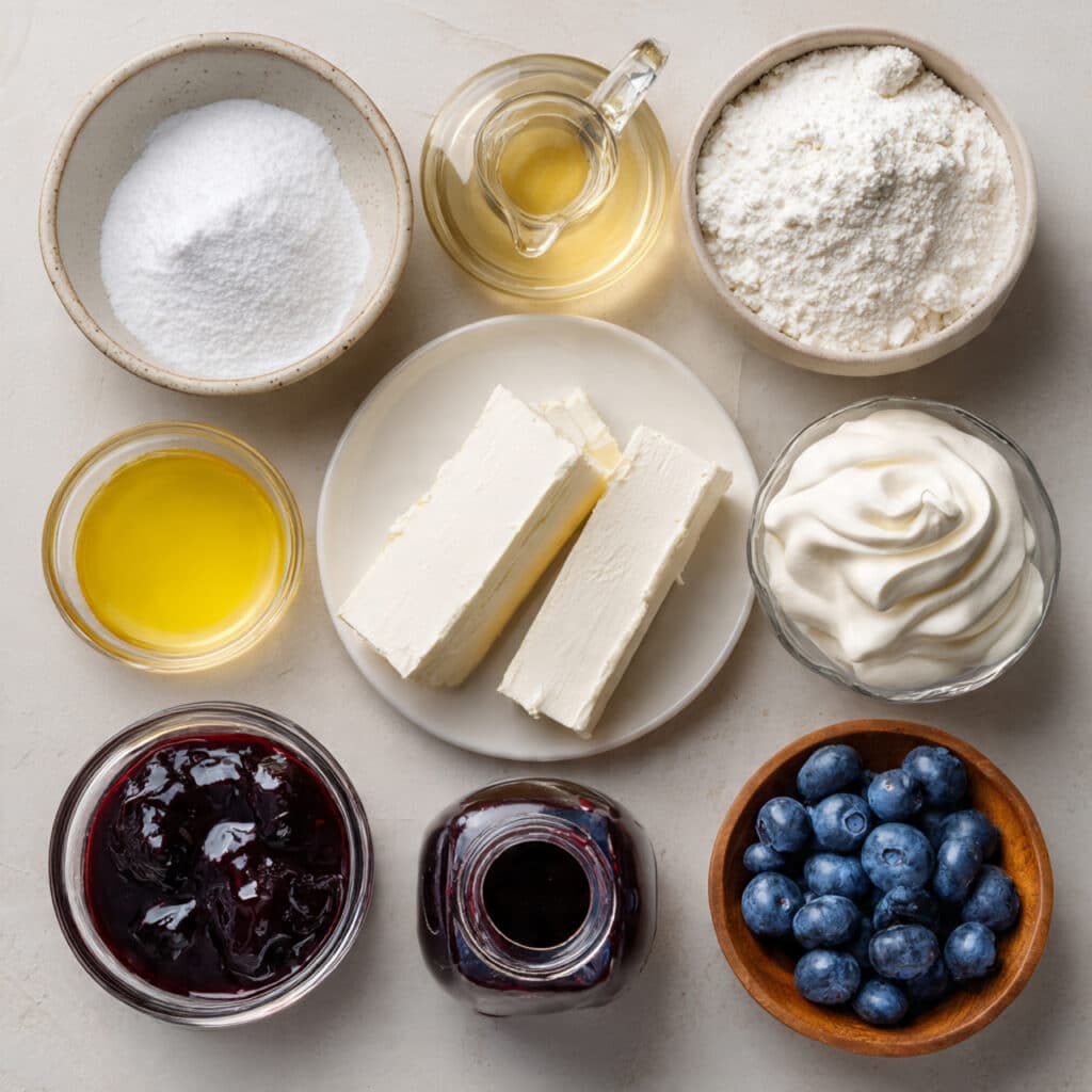 - If you want a more intense blueberry flavor, you can fold a small amount of the blueberry sauce directly into the cream cheese before doing the top swirl.