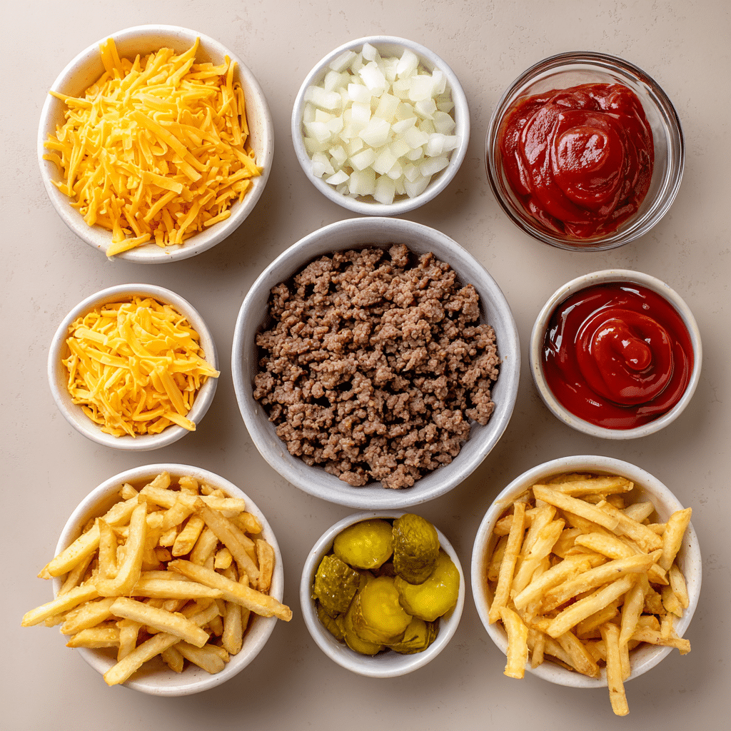 - Frozen French Fries: 4 cups – Crispy and golden, they create the perfect topping for the casserole.