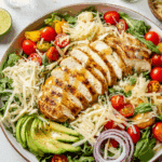 This salad was inspired by one of those days when I craved something fresh but filling. I had a grilled chicken breast leftover from the night before, a ripe avocado that needed using, and a wedge of Grana Padano that was begging to be shaved into ribbons. A few handfuls of greens and a drizzle of zesty dressing later, and the salad practically made itself. Since then, it’s become a go-to recipe that I keep coming back to. It’s quick to throw together but feels like a meal made with care.
