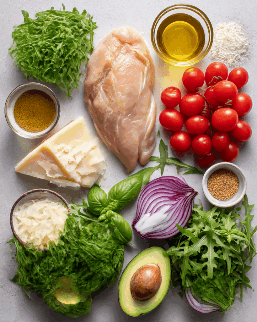 - Chicken Breast: 2 boneless, skinless – Lean and juicy protein that anchors the salad.
