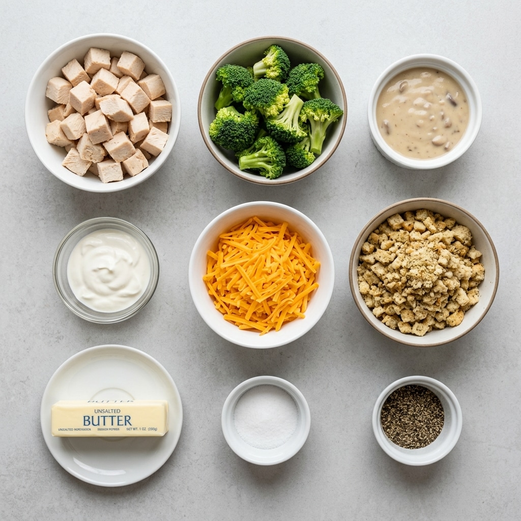 A comforting baked casserole made with tender chicken, broccoli, creamy sauce, and topped with a golden stuffing crust. Perfect for family dinners and make-ahead meals.