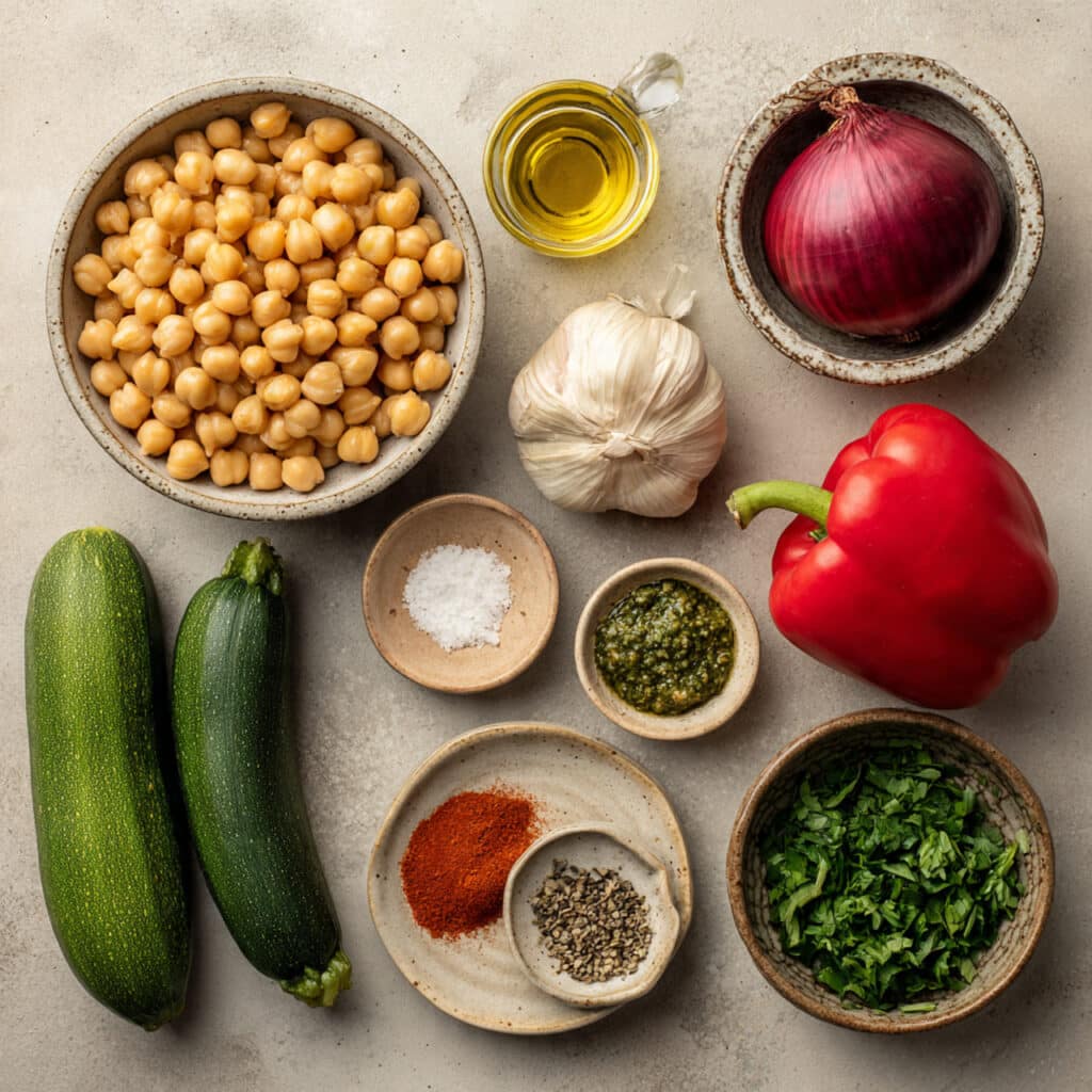 Zucchini: Mild and tender, zucchini absorbs seasoning effortlessly and balances the heartiness of the chickpeas.