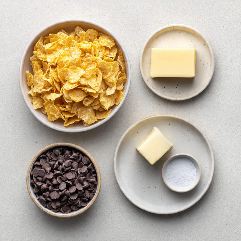 - Cornflakes Cereal: 4 cups, provides the crisp base.