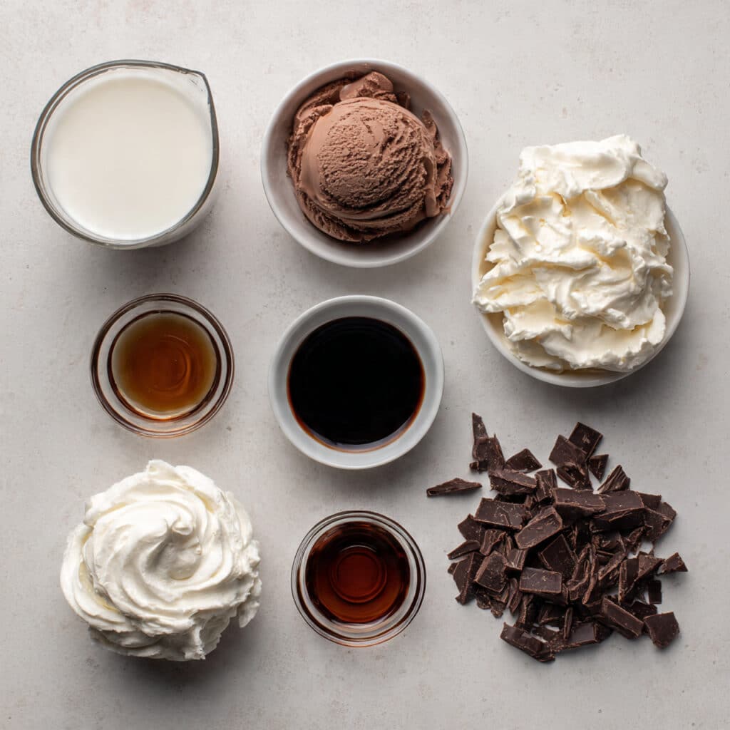- In a blender, add chocolate ice cream, whole milk, chocolate syrup, and vanilla extract.
