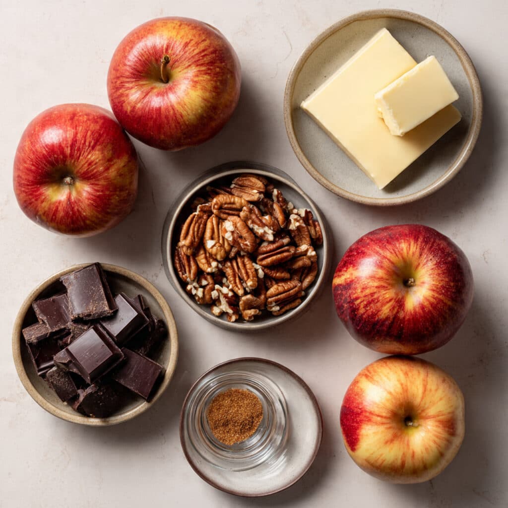 Tender baked apples filled with rich melted dark chocolate, crunchy nuts, and warm cinnamon, creating a cozy dessert that is simple, comforting, and naturally sweet.