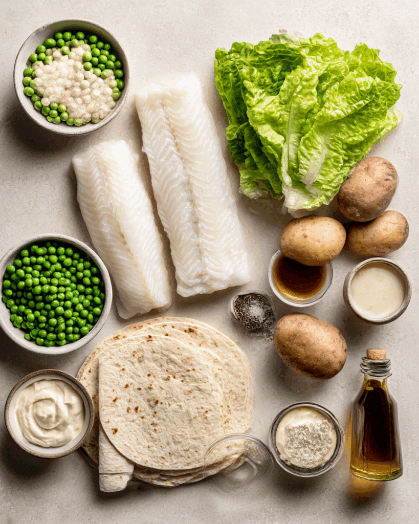 - Tartar Sauce: 1/4 cup – Brings classic chip shop tang to the wrap.