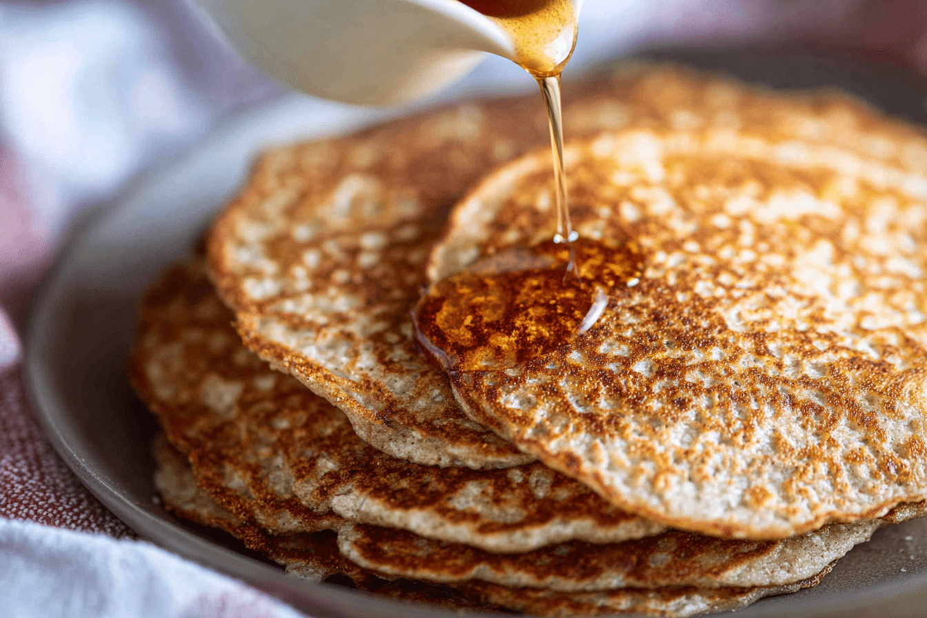 Old-Fashioned Oats: Ground oats give structure, fiber, and a nutty taste, making these pancakes more satisfying than traditional ones.