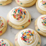 These cookies are soft and thick with a subtle chew at the edges. The center stays tender, almost cake-like, thanks to the cornstarch. The frosting is creamy, rich, and sweet, offering that perfect balance to the buttery base. And the sprinkles? They add a tiny crunch and a whole lot of fun.