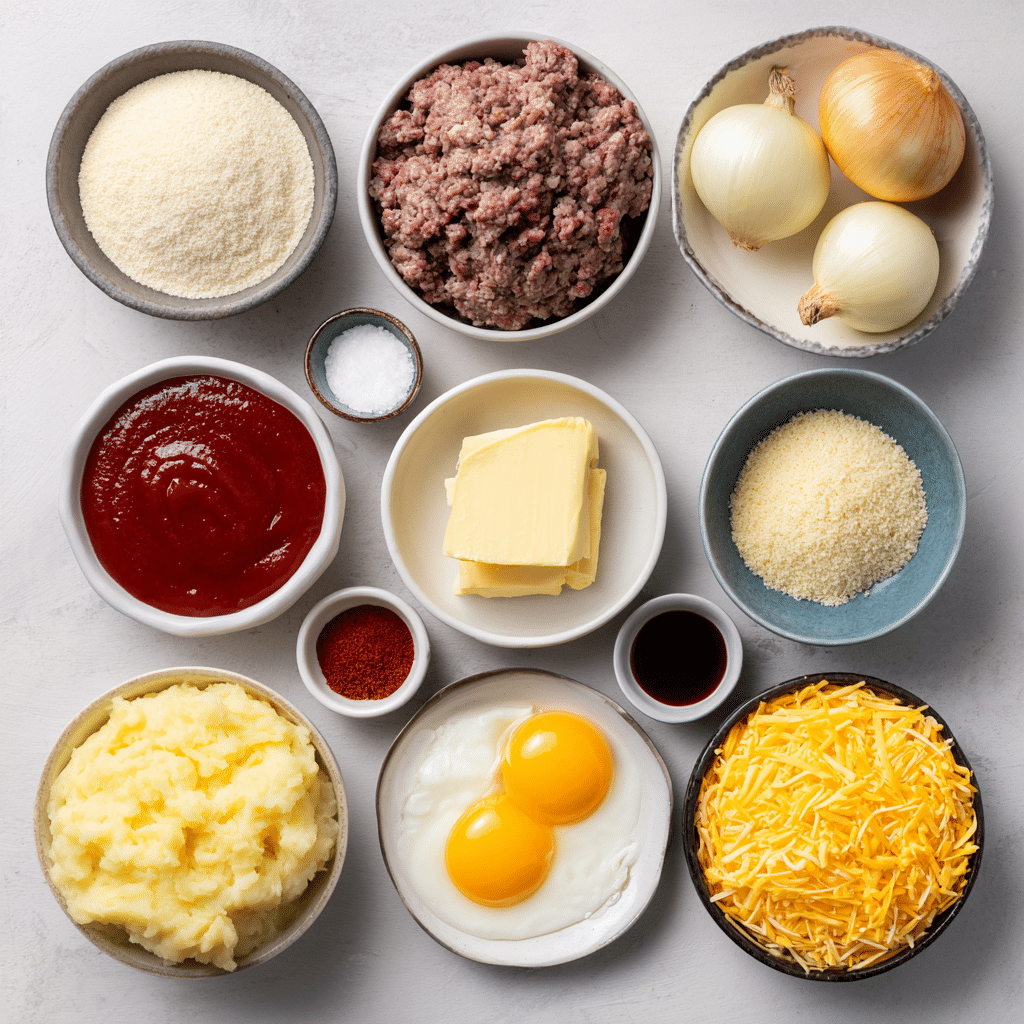 - Ground Beef: 1.5 pounds — the rich, savory base that gives this dish its signature meatloaf flavor.