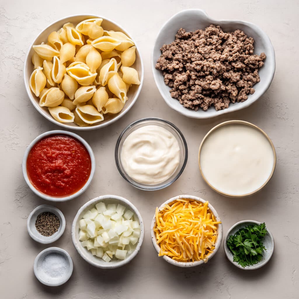 The sauce becomes silky and rich, coating every shell with a creamy tomato base that is slightly tangy and deeply savory. The beef adds texture, while the melted cheese creates that irresistible pull. This one is a total game-changer for busy weeknights.