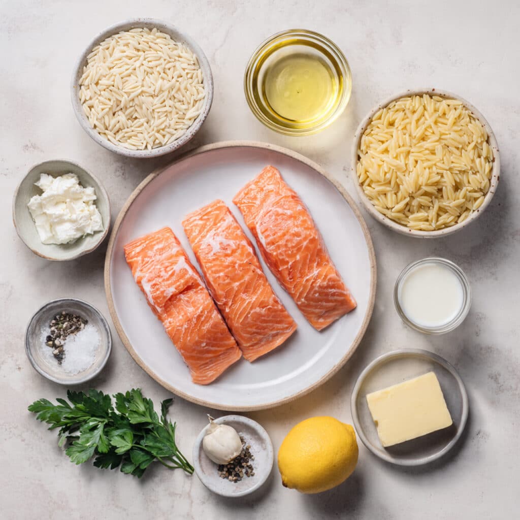 Ingredients You Will Need For Creamy Garlic Orzo with Salmon