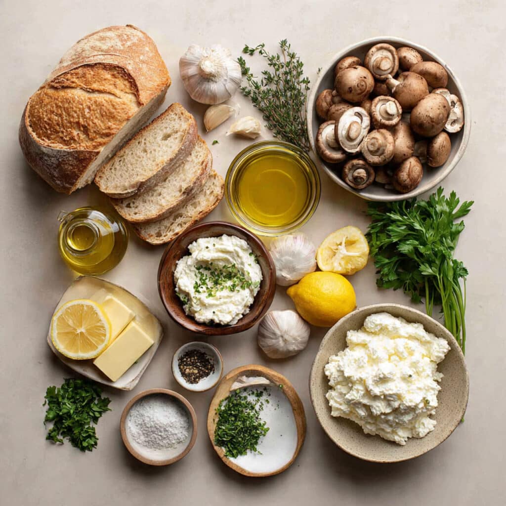 Ricotta Cheese: Creamy, mild, and slightly sweet, ricotta provides the perfect base layer to balance the bold mushrooms.