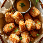 Serve the nuggets stacked high on a rustic plate lined with parchment, garnished with a few parsley sprigs or microgreens. Pair with colorful dipping sauces for visual appeal and flavor contrast. Use contrasting plates for extra pop.