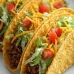 Golden crispy beef tacos filled with seasoned ground beef, melted cheddar cheese, and fresh toppings. A quick and satisfying taco night favorite with the perfect crunch in every bite.