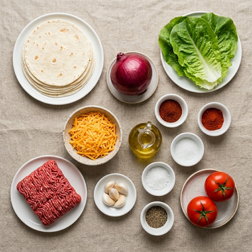 - Small Flour Tortillas: 8 tortillas, form the crispy shell.