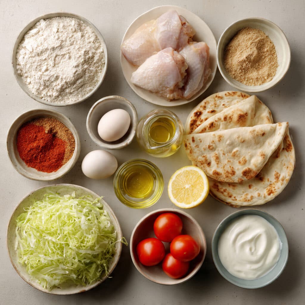 There is something incredibly comforting about biting into warm flatbread that gives way to crispy, golden chicken and fresh crunchy vegetables. The contrast of textures, the aroma of toasted bread, and that creamy sauce tying everything together, it is the kind of meal that feels both casual and special at the same time. Trust me, you are going to love this. It is simple enough for a weeknight, yet satisfying enough to crave again the very next day.