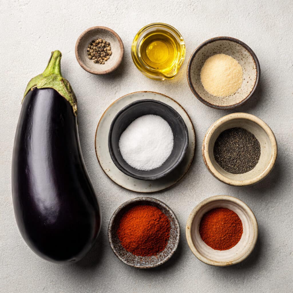 - Eggplant: 1 large eggplant, about 1 pound, sliced into 1/4 inch rounds, the star of the dish with a creamy interior.