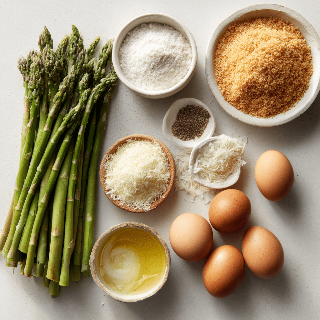 - All-Purpose Flour: ½ cup – Helps the egg adhere to the asparagus.