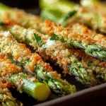 Crispy Parmesan Asparagus Sticks are the perfect blend of crunchy and tender, coated with a golden crust of panko and Parmesan, making them an irresistible appetizer or snack.