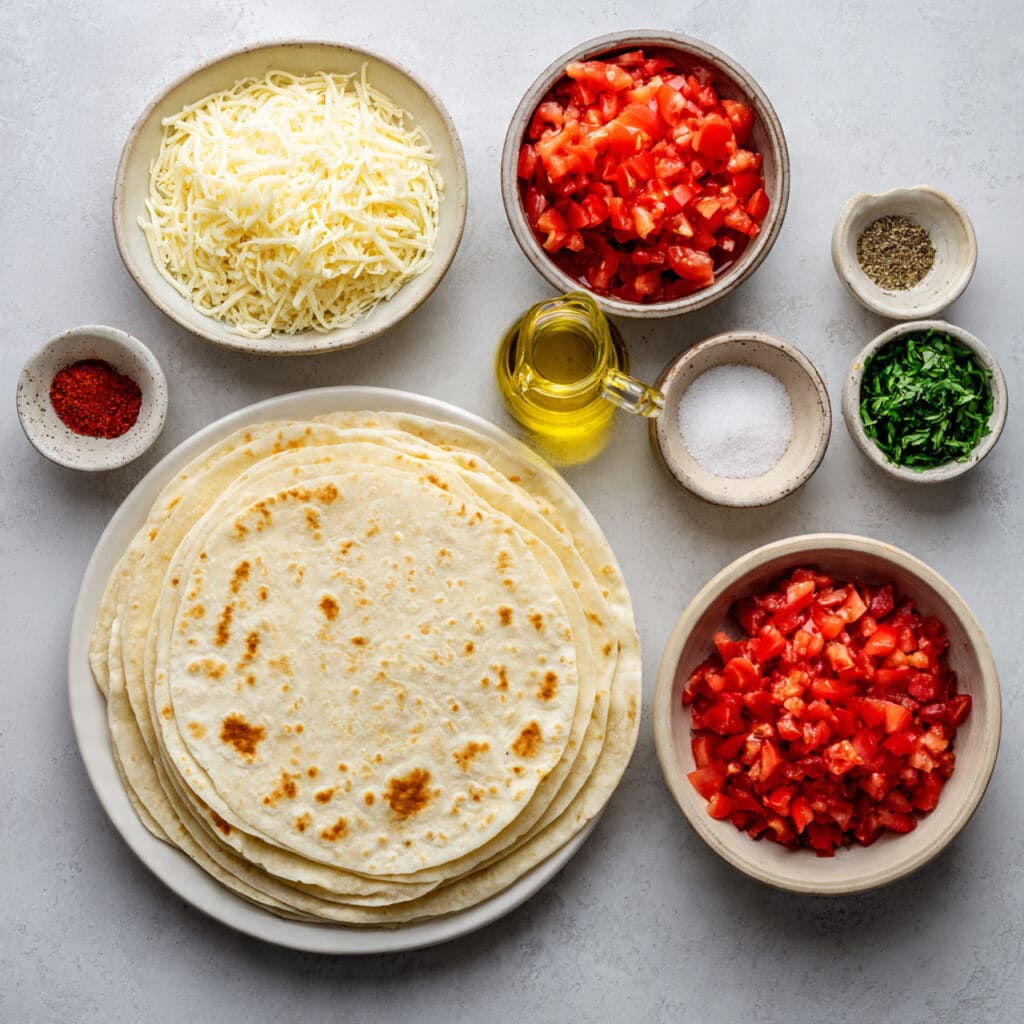 - Flour Tortillas: 4 medium tortillas, about 8 inches each. These become the crispy base once baked.