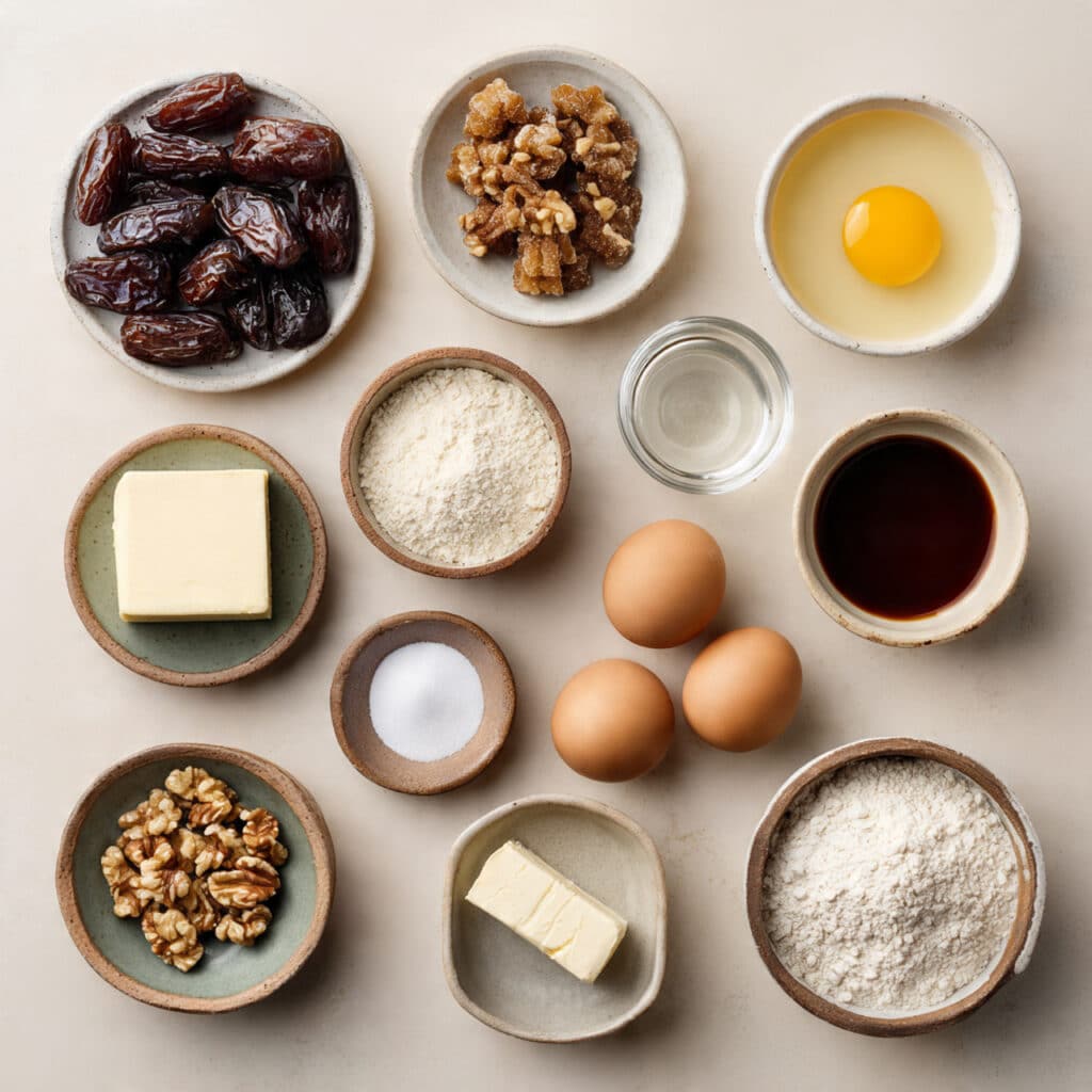 Dates: Naturally sweet and chewy, dates bring not only flavor but also moisture and a rich, sticky texture that defines this cake.