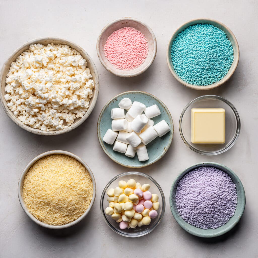 - Crispy Rice Cereal: 6 cups, provides the light crunchy base.