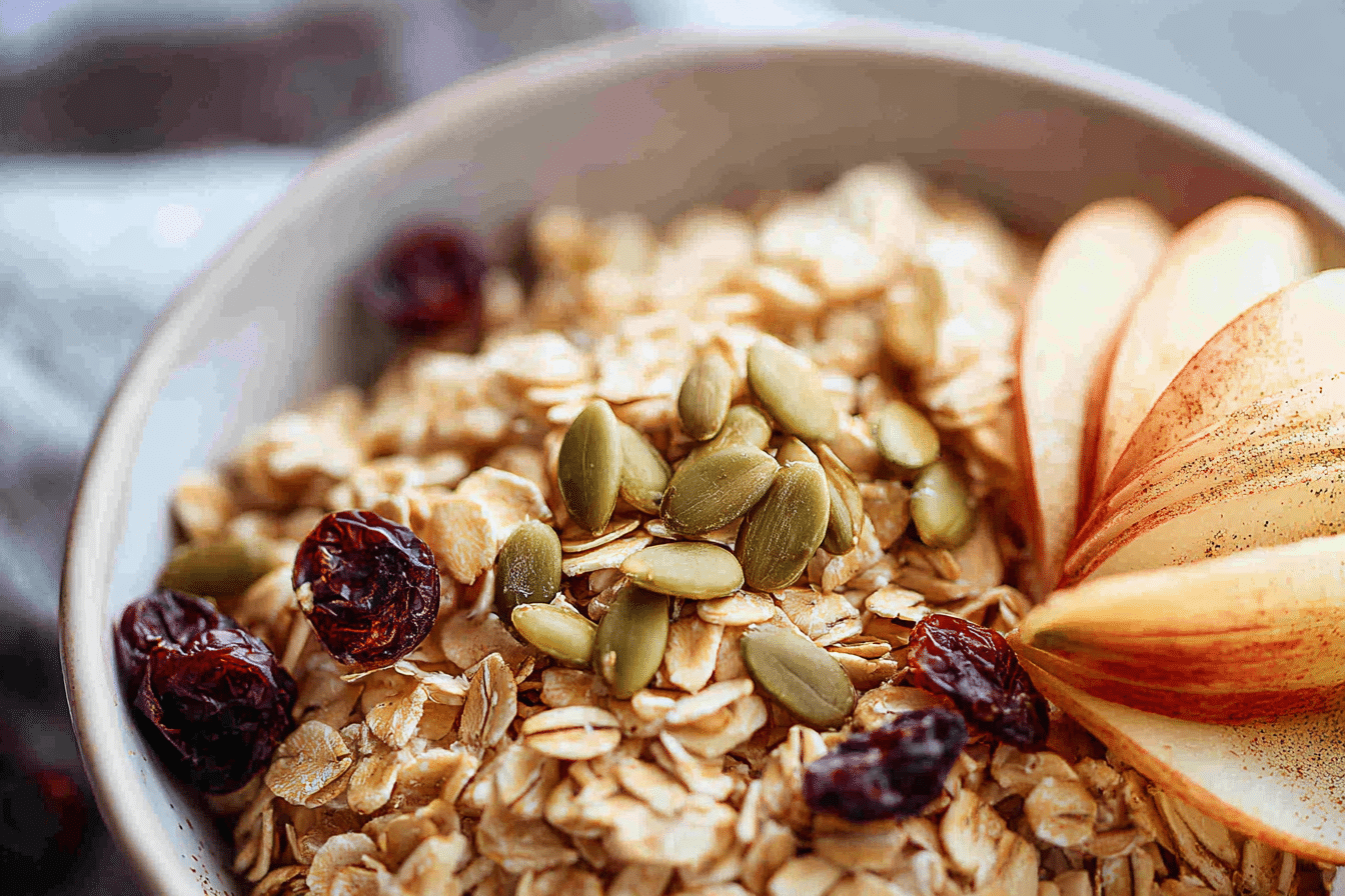 Fall Harvest Oats is a cozy autumn breakfast packed with apples, pears, pumpkin, warm spices, and crunchy toppings. Creamy, hearty, and naturally sweetened with maple syrup, it’s comfort in a bowl perfect for chilly mornings.