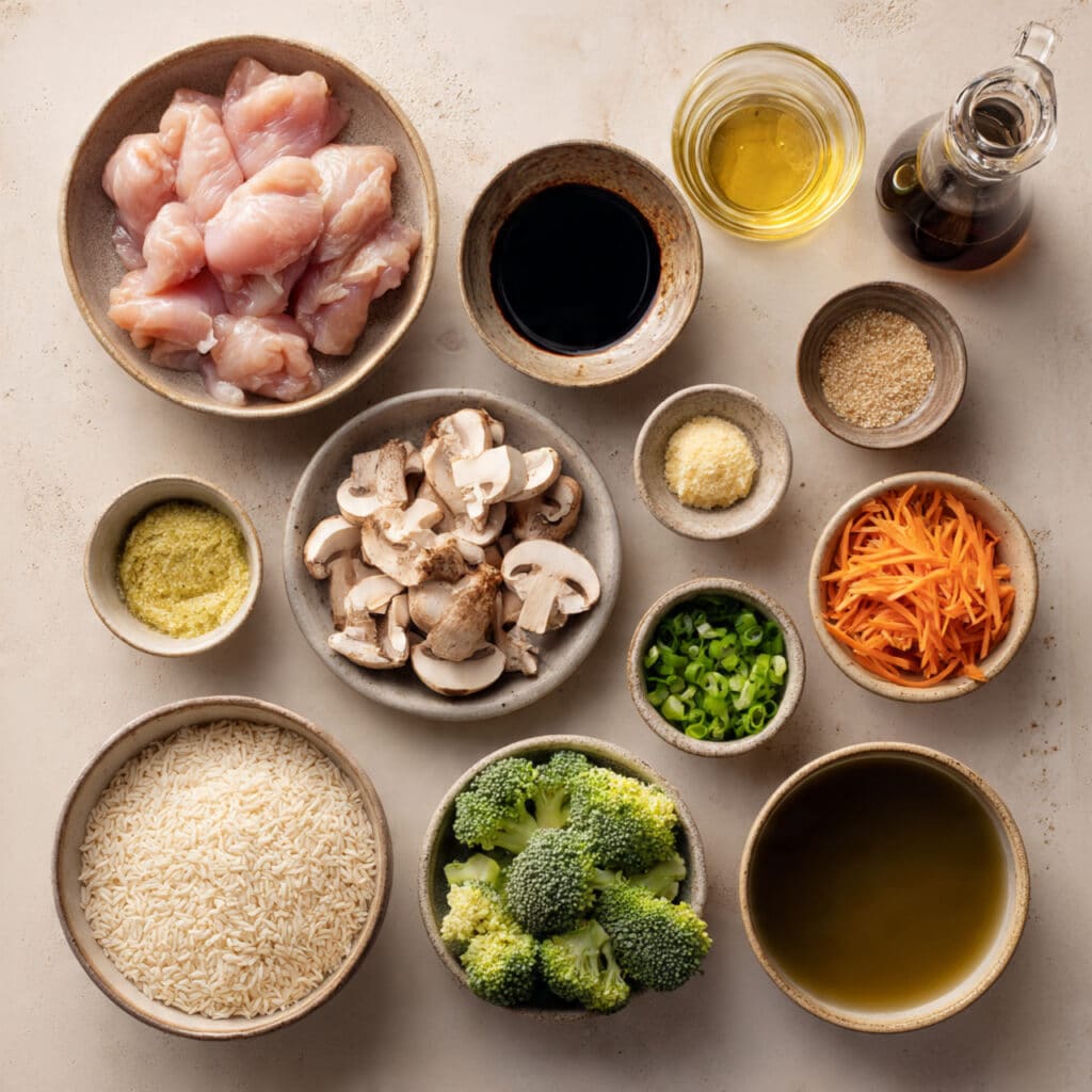 - Mushrooms: 1 cup, sliced – Earthy and meaty for depth.
