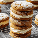 Soft, spiced gingerbread cookies with a crackly sugar coating and a smooth vanilla cream filling, these Gingerbread Crinkle Cookie Sandwiches are the ultimate holiday treat — cozy, festive, and irresistibly delicious.