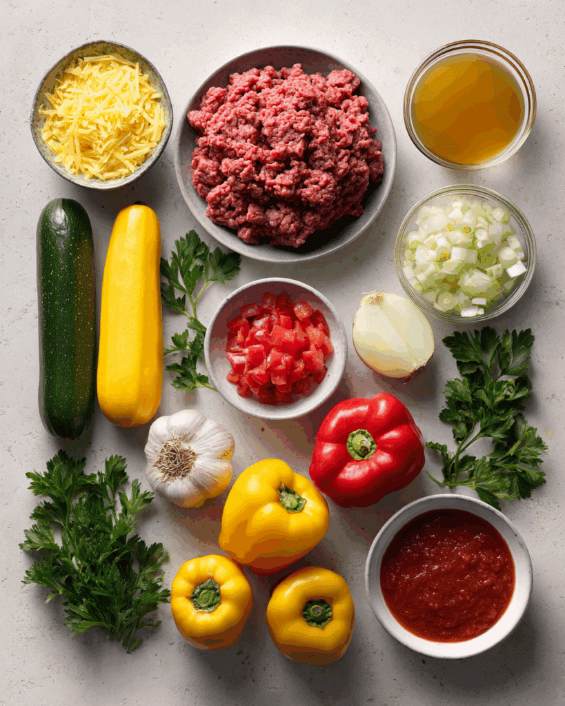 - Ground beef: 1 pound – Savory base for a meaty, filling stew.