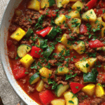 This Ground Beef Veggie Stew is a hearty, one-pot meal loaded with vegetables and seasoned ground beef in a rich tomato broth — perfect for chilly nights or cozy family dinners.