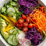 Rainbow salads became popular as part of modern wellness inspired cooking, where the focus shifted toward eating a variety of colorful vegetables for both visual appeal and natural nutrition. This approach encourages mixing raw, fresh ingredients in creative ways rather than relying on heavy dressings or complicated cooking methods. Over time, this style has become a staple in many clean eating kitchens because it is simple, flexible, and naturally beautiful.