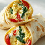 A soft and satisfying wrap filled with fluffy scrambled eggs, creamy Greek yogurt, fresh spinach, and juicy tomatoes, all rolled into a wholesome whole wheat tortilla. Perfect for a quick, nourishing breakfast or light lunch.