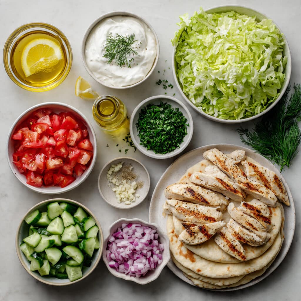 A refreshing and flavorful wrap packed with juicy grilled chicken, crisp veggies, and a creamy herb yogurt sauce, all wrapped in soft pita bread.