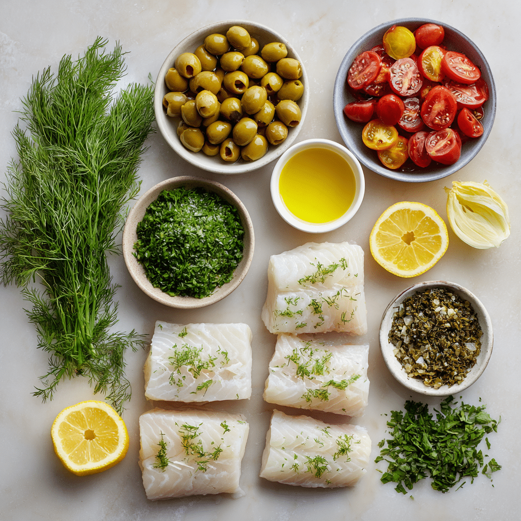 Green Olives: These little gems are the heart of the dish, offering a salty tang that complements the delicate fish.