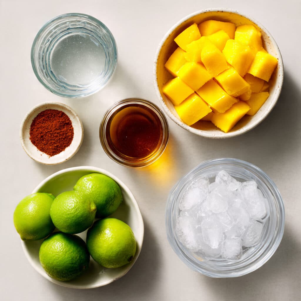 - Ripe Mango: 2 cups fresh mango chunks, peeled, provides natural sweetness and tropical flavor.