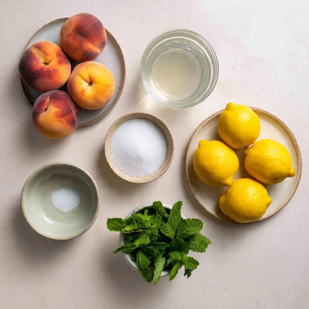 - Serve and Enjoy: Fill glasses with ice, pour over the lemonade, and garnish with peach slices and mint if desired.