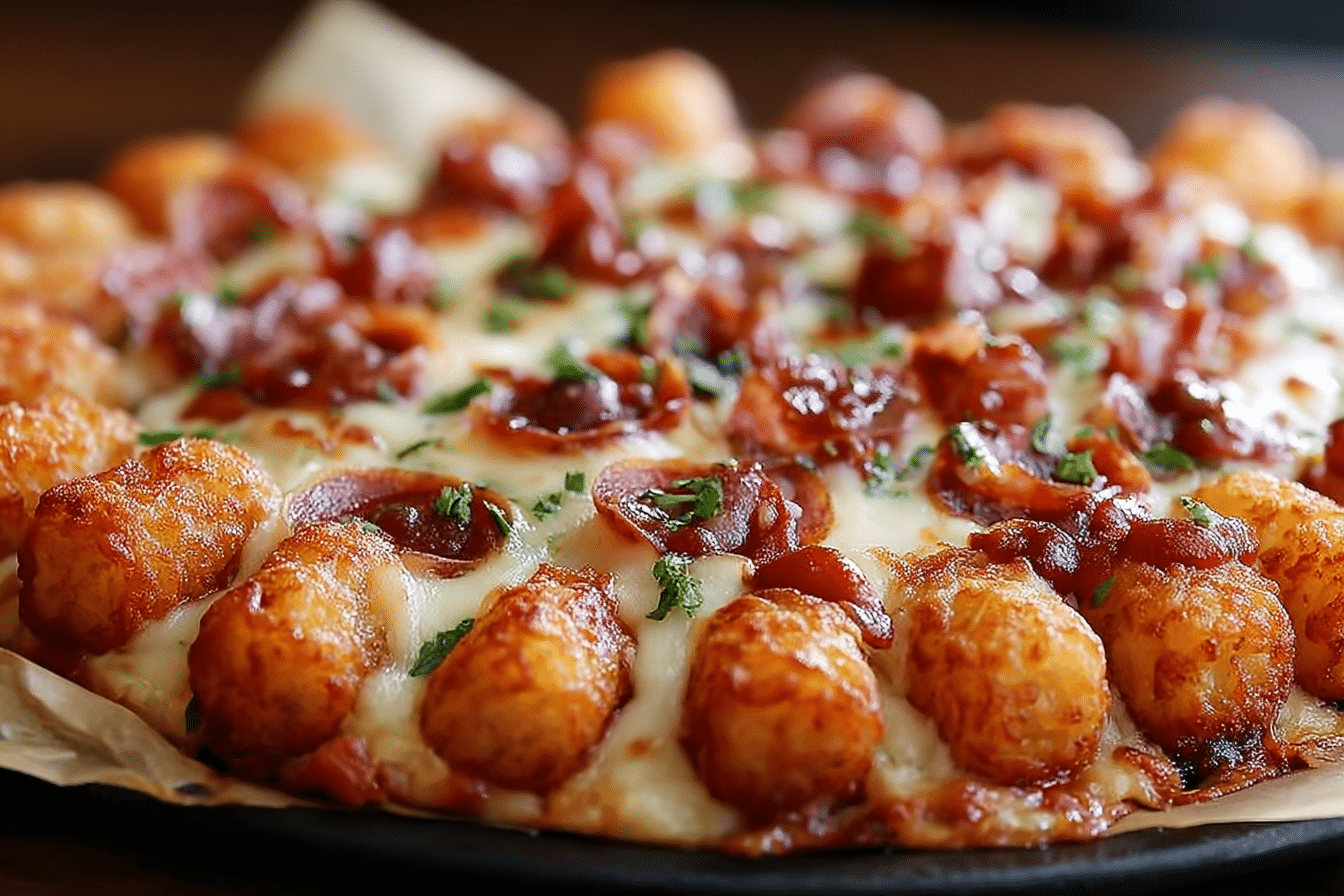 - BBQ Chicken Tater Tot Pizza: Swap sauce for BBQ, add shredded chicken and red onions.