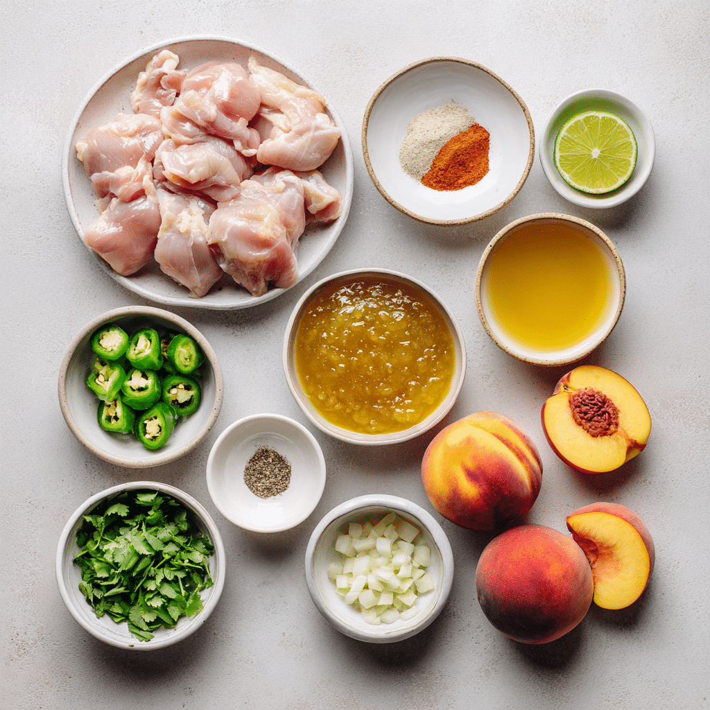 The magic lives in contrast, tender chicken with bronzed edges, lush peach slices that soften but keep their shape, and a sauce that lands sweet first, then blooms with jalapeño heat and a bright citrus finish. The honey gives silk, the preserves add body, and the vinegar and lime keep everything balanced and vibrant.