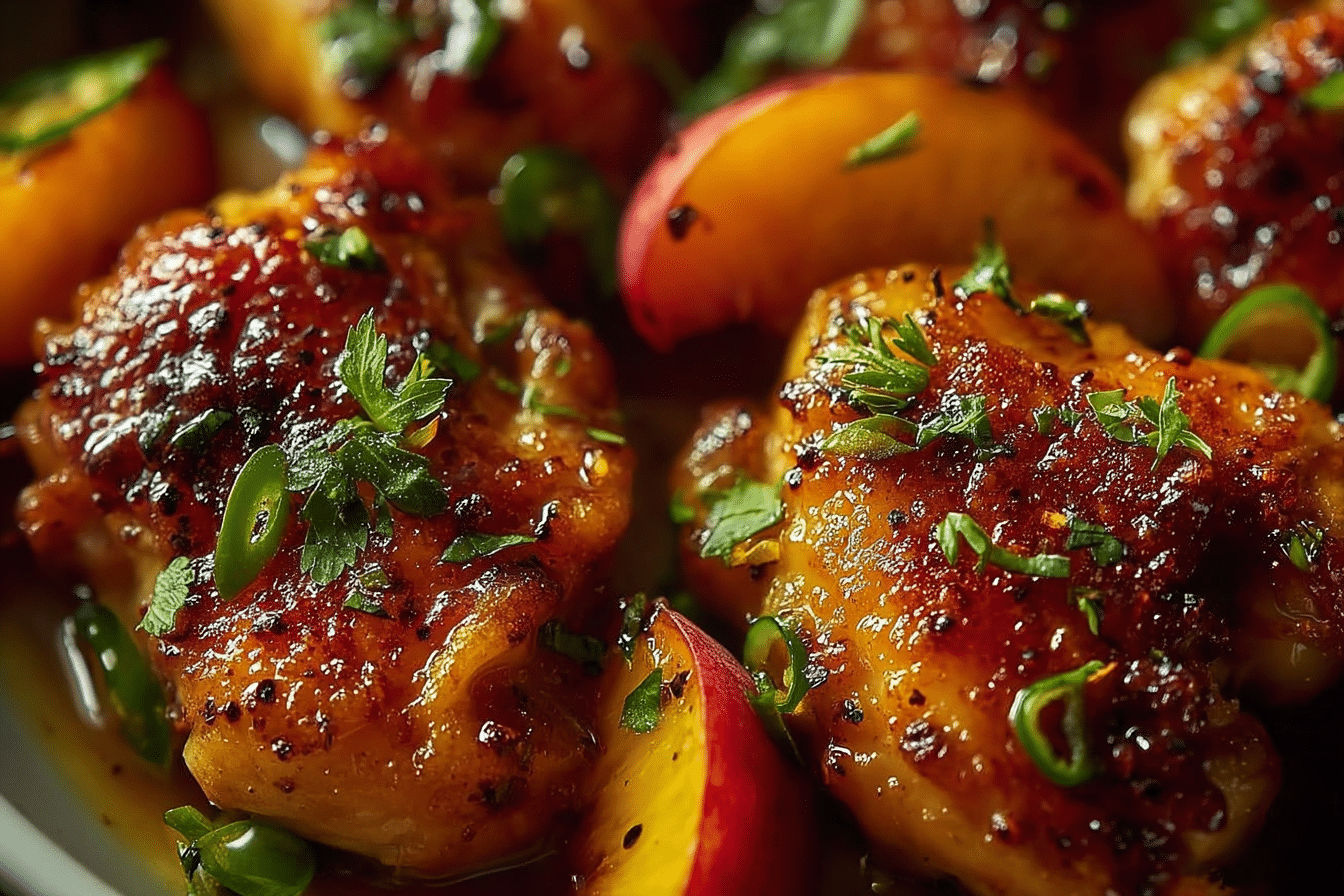 Golden seared chicken glazed with juicy peaches, jalapeño heat, and a bright splash of lime. Sweet, spicy, and tangy in one skillet, this weeknight wonder delivers a sticky, glossy sauce that clings to every tender bite.