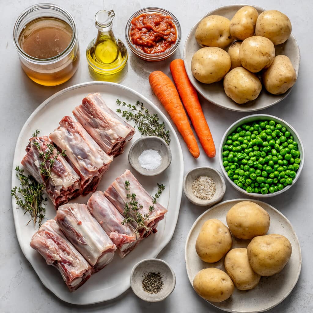 - Assemble the Dish: In the same pot, sauté onion and garlic for 3 minutes until fragrant. Stir in tomato paste, then pour in beef broth. Return the lamb to the pot and add carrots, potatoes, and thyme.