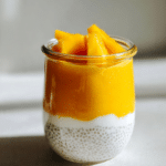 - Assemble the Dish: After 4 hours or overnight, stir the thickened chia pudding. Spoon the pudding into jars, filling halfway. Top with blended mango puree.