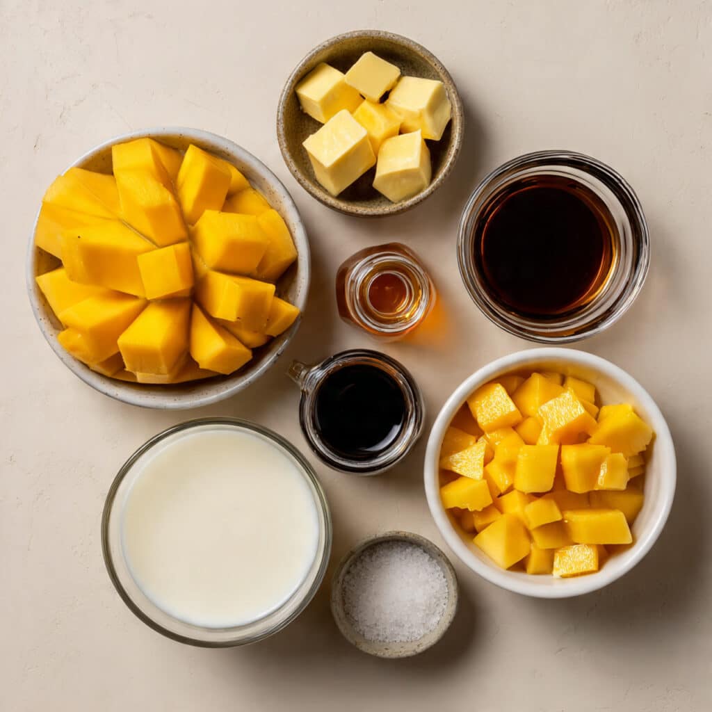 - Maple Syrup or Honey: 1 to 2 tablespoons, depending on how sweet your mangoes are. This rounds out the flavor.