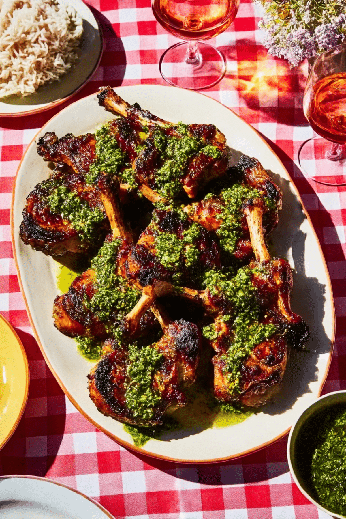 Plate the chops, spoon chimichurri generously over the top, and serve with rice or crusty bread.