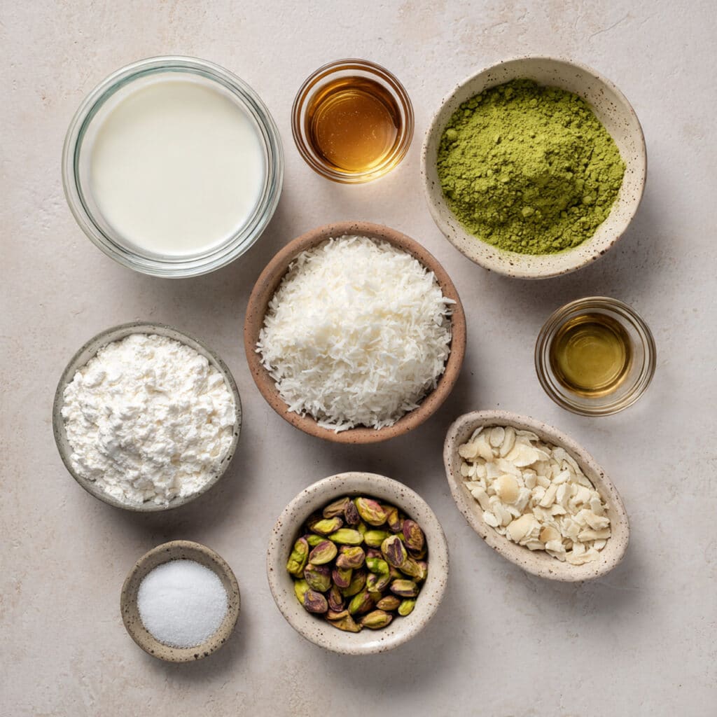 Matcha Powder: It brings a subtle bitterness that balances sweetness beautifully and gives that stunning green color.