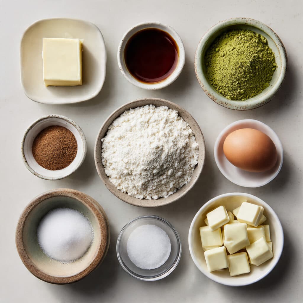 Matcha Powder: Finely ground green tea that adds both color and a subtle earthy depth.